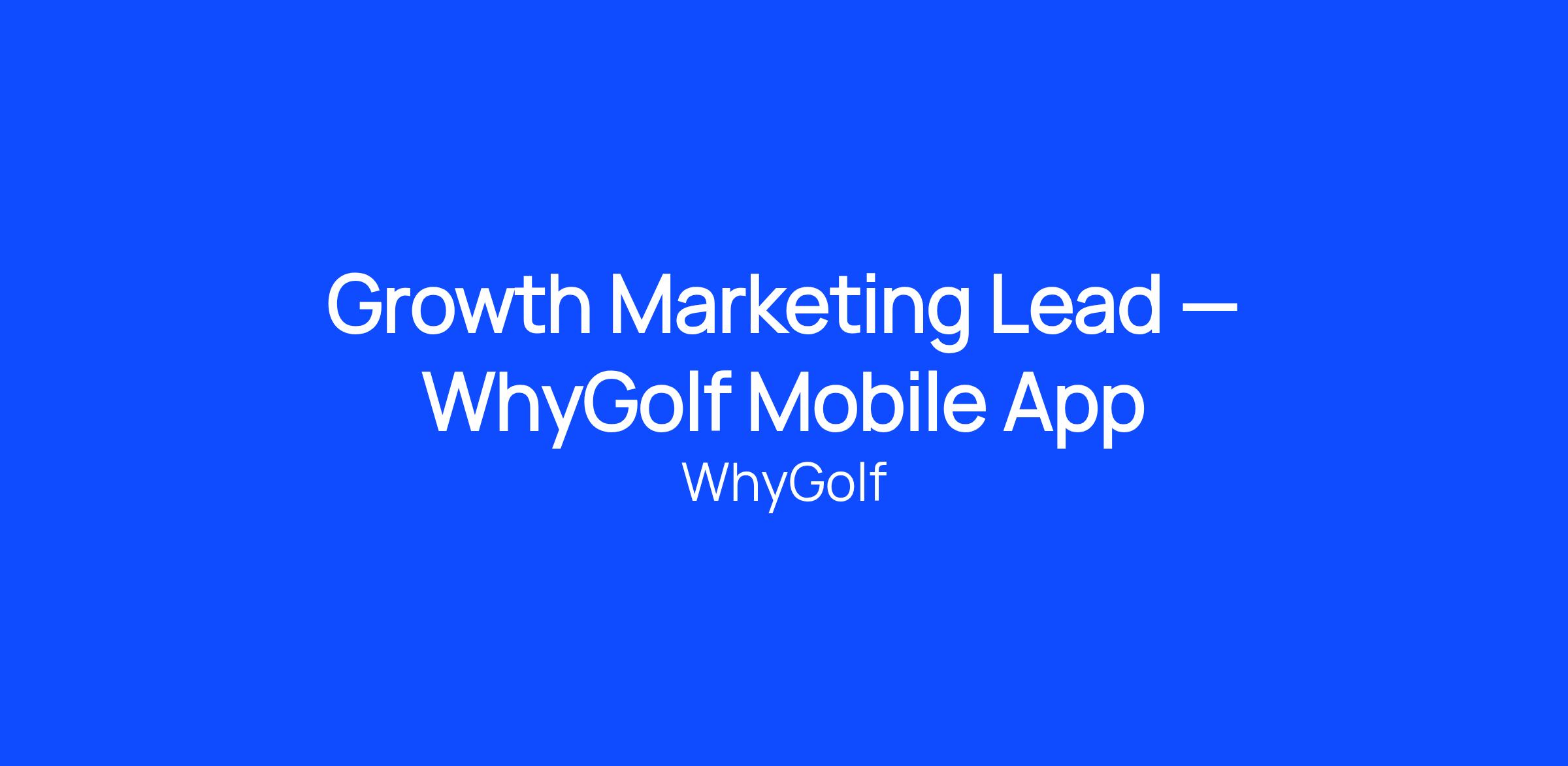We’re hiring a Growth Marketing Lead to own paid acquisition and growth for the WhyGolf mobile app.