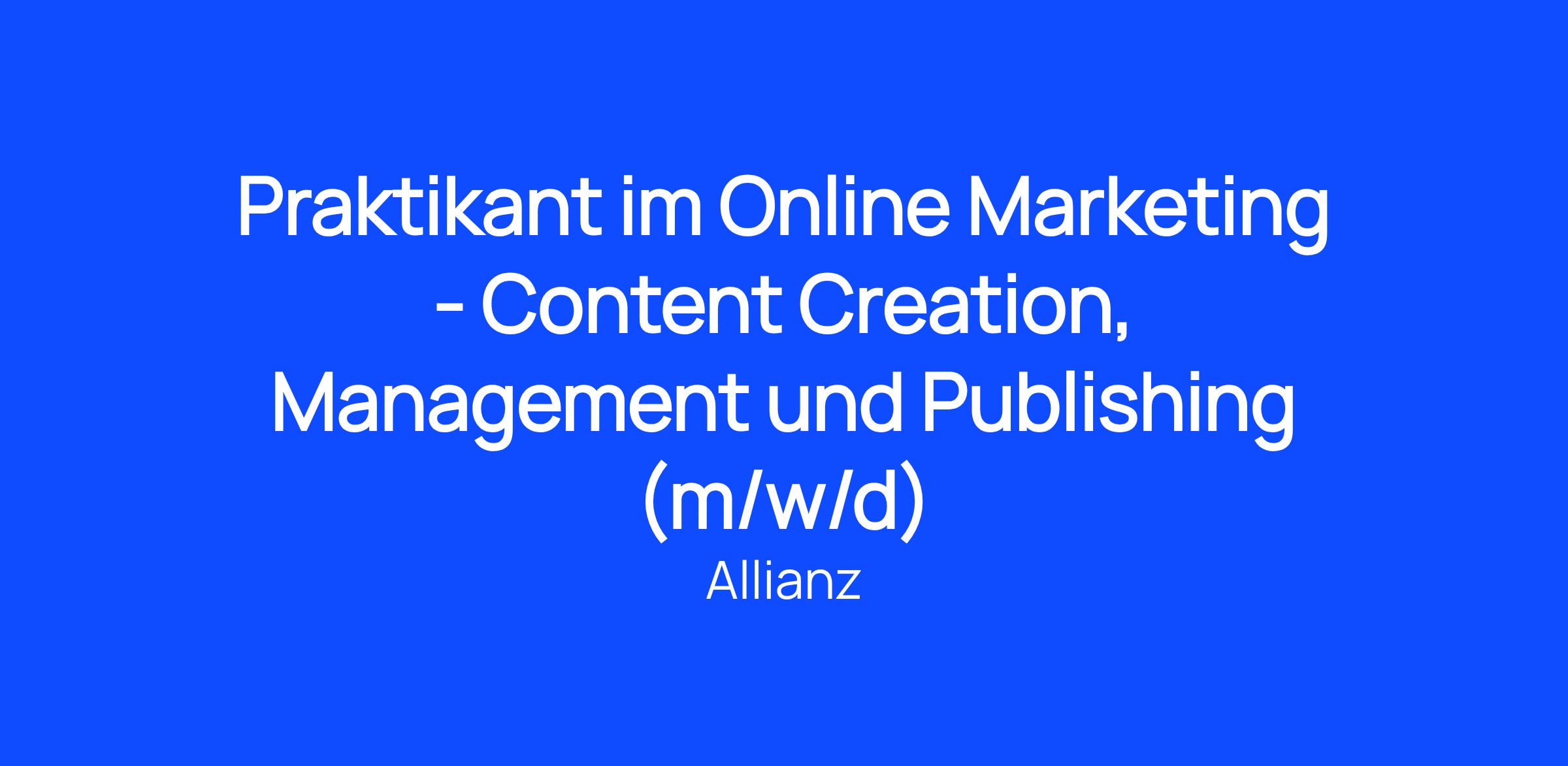 Im Fokus unseres Teams steht die Weiterentwicklung unseres Onlineauftritts und die OnlineKommunikation. Trage dazu bei, die Online-Strategie der Allianz in einem hybriden Arbeitsumfeld noch erfolgreicher zu gestalten und nutze die Chance, anschließend als Werksstudent:in bei uns einzusteigen.